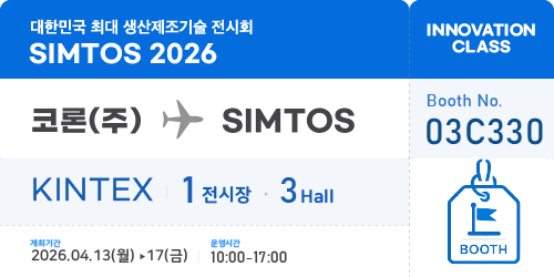 심토스 2026 전시회 안내초정밀, 초고속 첨단 기술을 기반으로 한 초정밀 가공설비 제조기업 코론입니다! 대한민국 최대 생산제조기술 전시회 <SIMTOS 2026> 에 코론 CORRON 이 참가합니다. 명칭: SIMTOS 2026